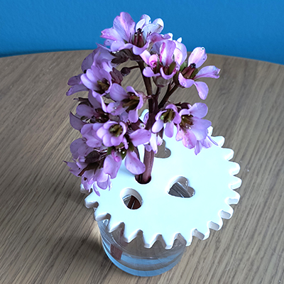 Séparateur de fleurs en faïence de 10 cm de diamètre environ et 0,5 cm d’épaisseur environ. Il est façonné à la main et engobé à la main. Il a subi 1 cuisson à 1020°C, puis une autre à 980°c