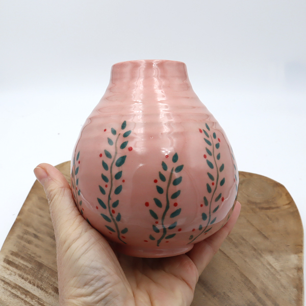 Tourné, ce vase est en grès, cuit à haute température, dessins à la main. Ce vase fait partie de tests réalisés pendant l’année 2025.
